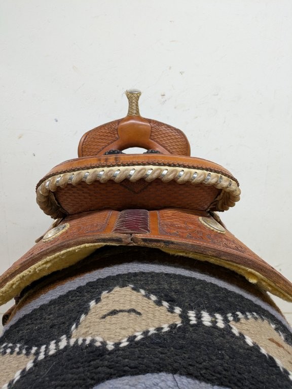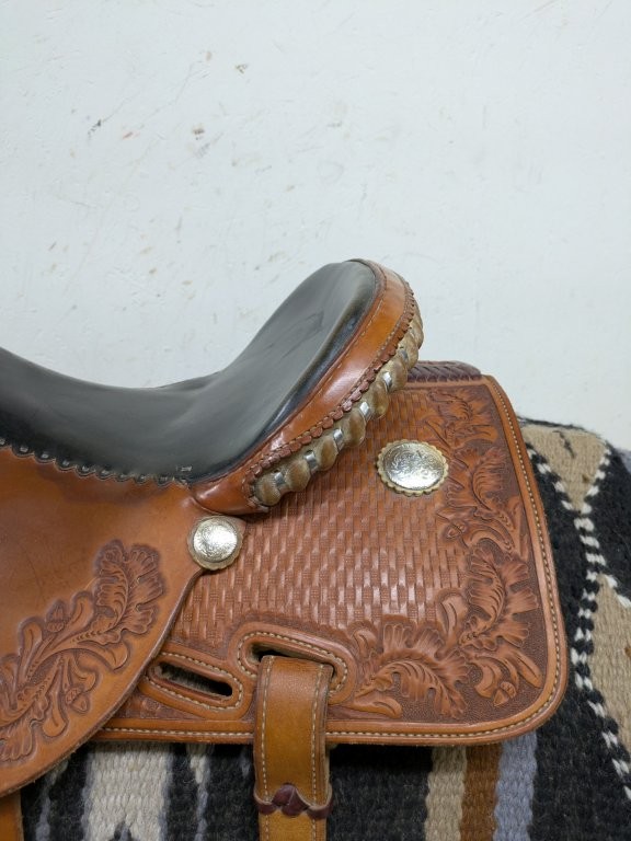 - Rawhide and silver laced cantle
