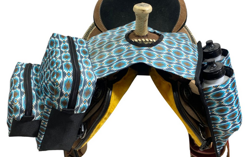 - Bring style and practicality to your saddle with the Showman Gray Blue Aztec Print Nylon Horn Bag.