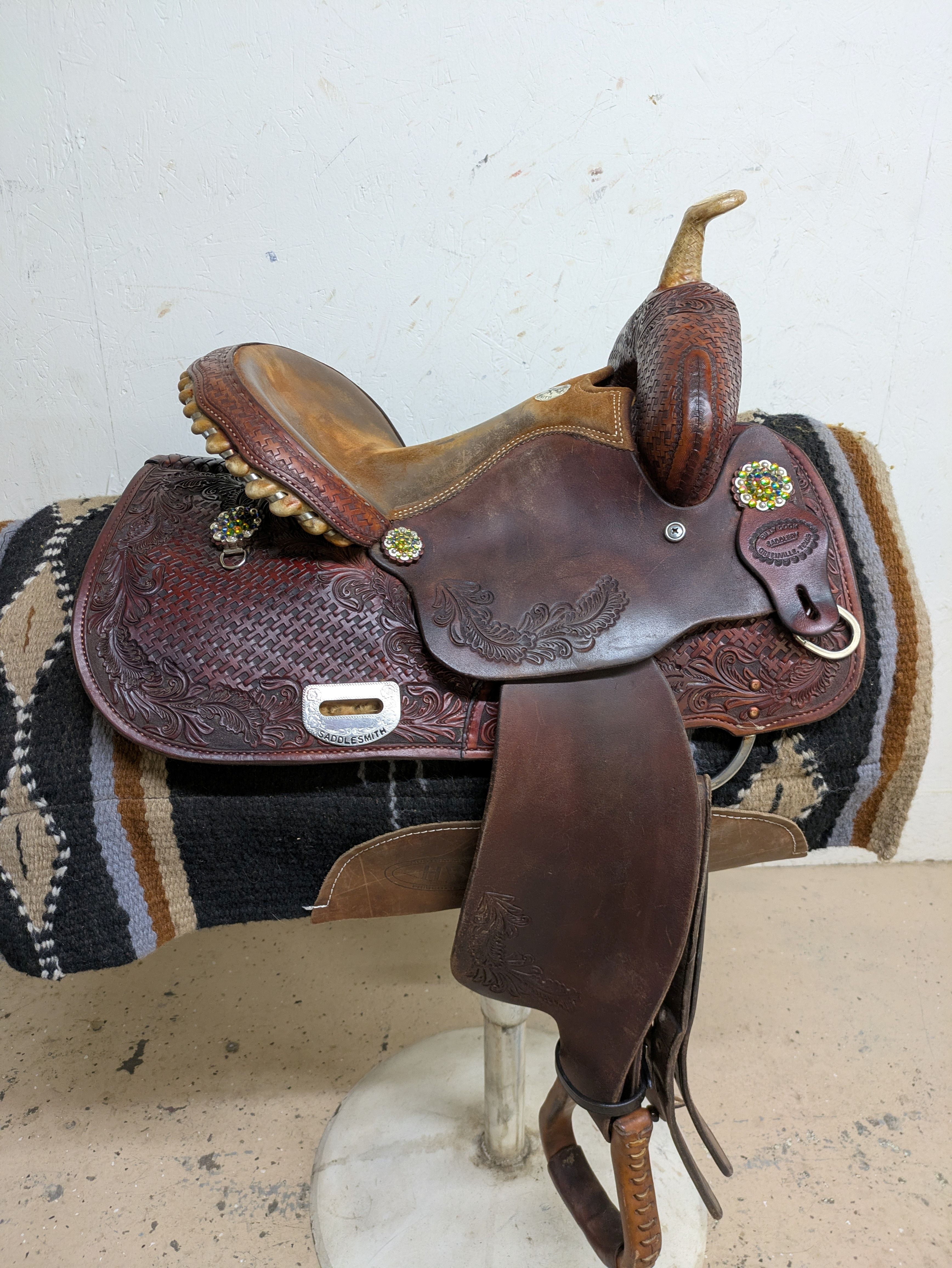 2-1381 13.5 inch Used Billy Cook Western Connie Combs Barrel Saddle