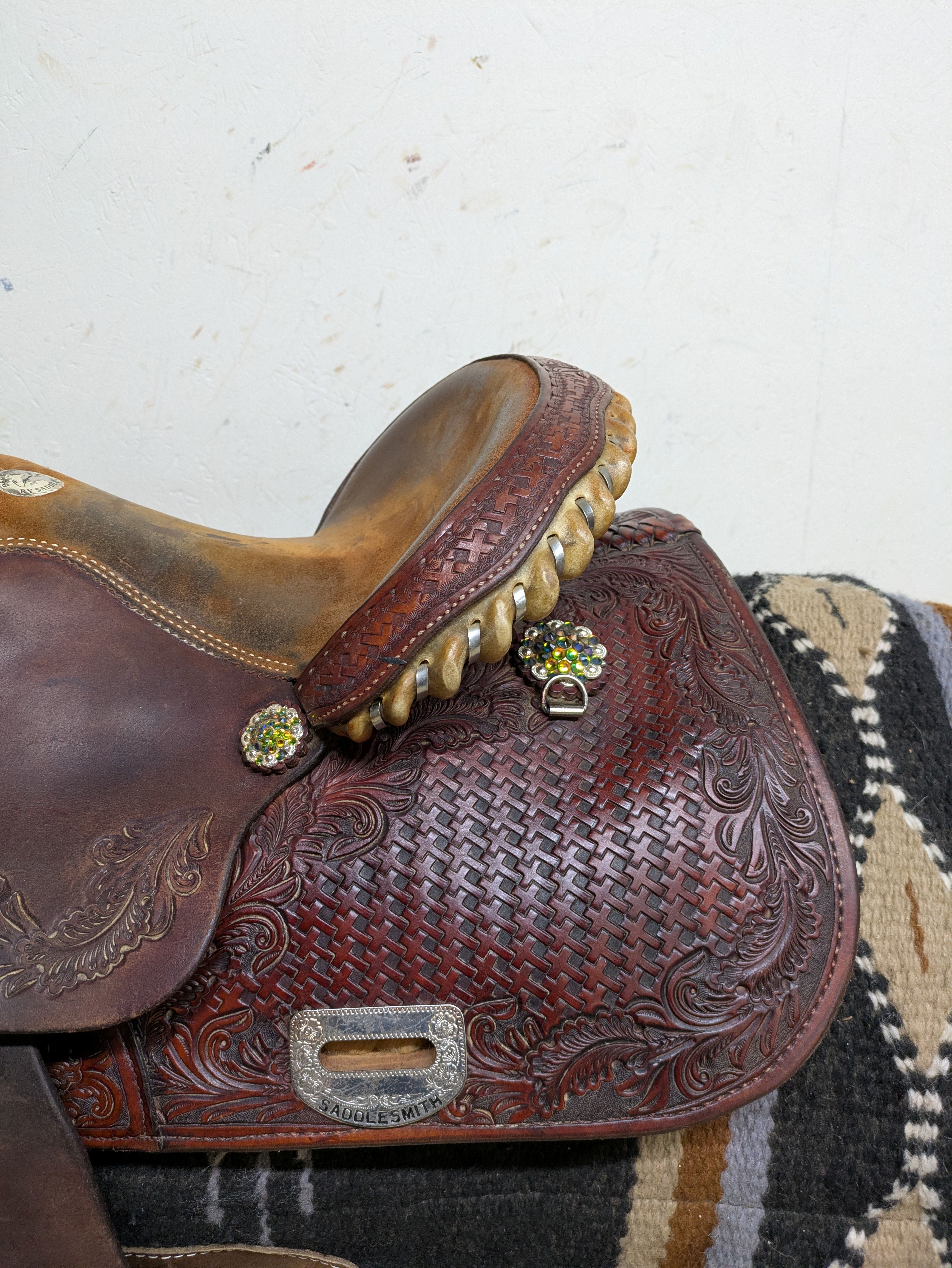 - Rawhide and silver laced cantle