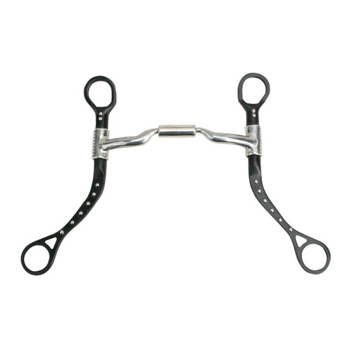 The MB 04 is similar to the MB 02 in that it will rotate on the tongue and apply tongue pressure; however, it has a small (¼") port that introduces some tongue relief to the horse. The port allows the horse to swallow and move his tongue when he is moving forward and relaxed, which acts as a release or reward. The mouthpiece is curved, and it wraps around the bars and lips instead of pinching. Sweet iron mouthpiece oxidizes and encourages salivation.