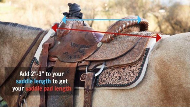 Note: 1-3 inches of saddle pad in the front and in the back of the saddle should be visible