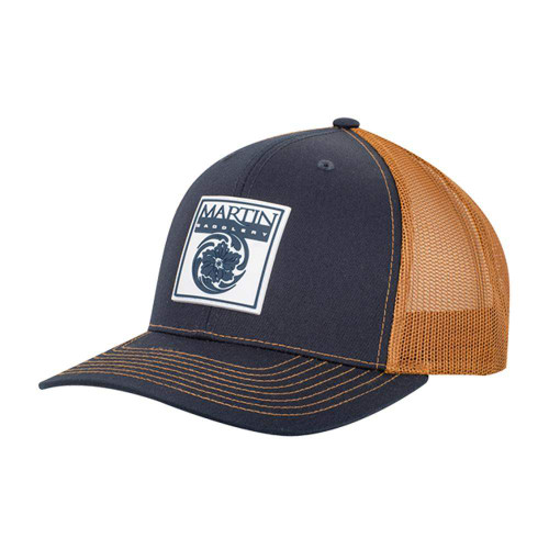 Try a new color combo for your new cap: navy and caramel. The snap back allows a customized fit, and and mesh back keeps air flowing, even on hot days. The navy front and bill stays clean, and the Martin Saddlery logo shows that you value the company you keep.