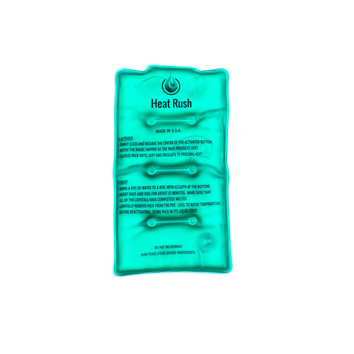 This is our all around most versatile heat pack. It is large enough to use on your lower back, neck, arms, knees and legs. It is also convenient enough to carry with you anywhere to keep warm on a cold day. The 5×9 lasts about and 1½ hours depending on how well you insulate it.