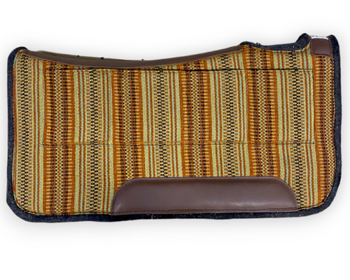 Description "The Contoured Relief Pad has a durable cotton duck top with a 1"" Wool felt bottom. Contoured along the spine for an instant fit. The pockets contain 1/2"" Wool felt shims, which can be removed to better fit your saddle. 32 x 32. Sedona pattern."