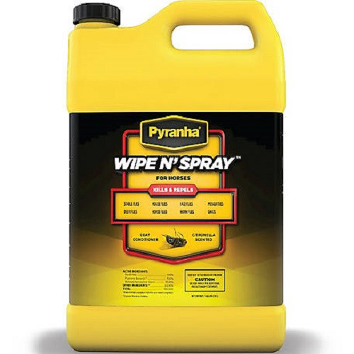 - More than just your average fly spray, Pyranha Wipe N' Spray comes ready-to-use, provides insect protection, and imparts a high sheen to the hair when brushed out.