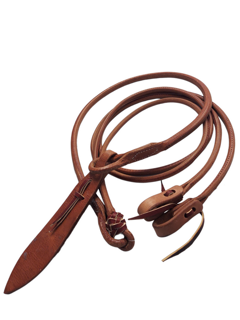 These romel reins are made by Schutz Brothers. They are leather and made durable. They are high quality and have a classic look.