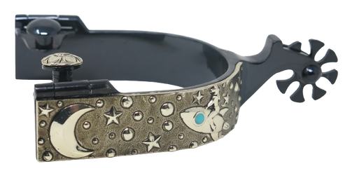 Stand out from the herd with the Augus Silversmiths Cowgirl Rocket Ship and Moon Western Spur SP27 — where Western tradition meets unique cowgirl flair.