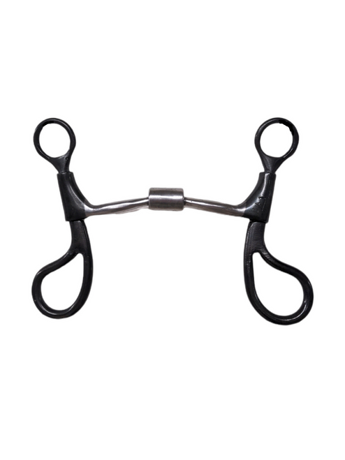 Medium to strong severity, two bar pieces of the mouth are connected by a barrel type hinge in the center. This mouth piece has slightly more break in the center with both the bar pieces functtoning independently allowing lift on one side at a time. This mouth piece also applies tongue pressure and has copper inlayed bars.