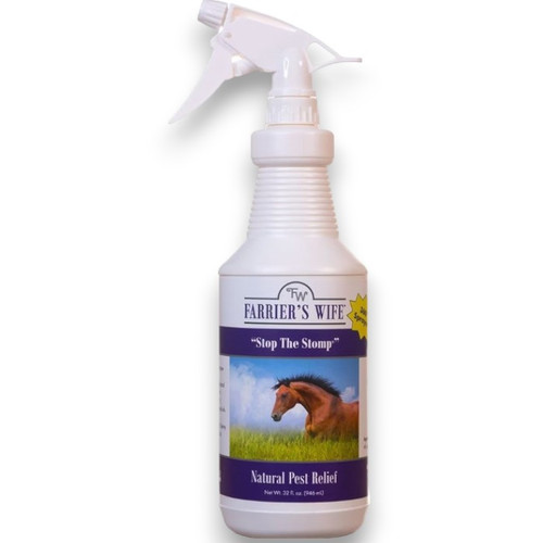 Keep pesky pests away from your horses with Farrier’s Wife Stop the Stomp Natural Pest Repellant Horse Spray! Crafted with only natural ingredients including peppermint oil, tea tree oil, geranium oil, eucalyptus oil, neem seed oil and purified water, this formula helps combat flies without citronella or pesticides. The beneficial blend of ingredients also helps to naturally condition your horses’ coats!