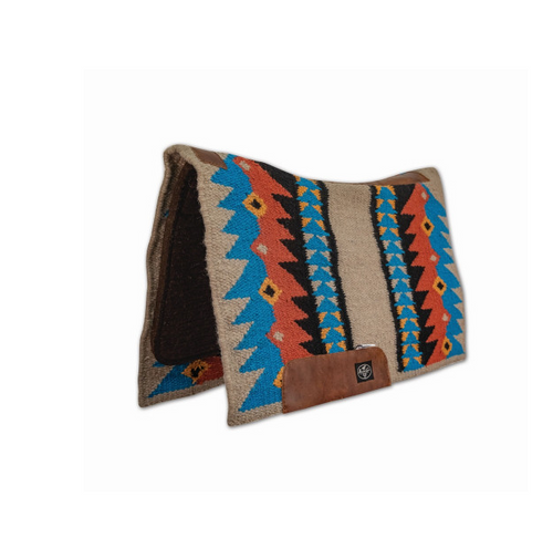 Combination pad of hand-woven New Zealand wool blanket top and 100% steam pressed wool felt pad. Contoured spine for anatomically correct fit. 100% Steam-pressed wool felt wicks moisture and provides impact protection. Skiving underwear leathers for uniquely close contact and better communication between horse and rider.